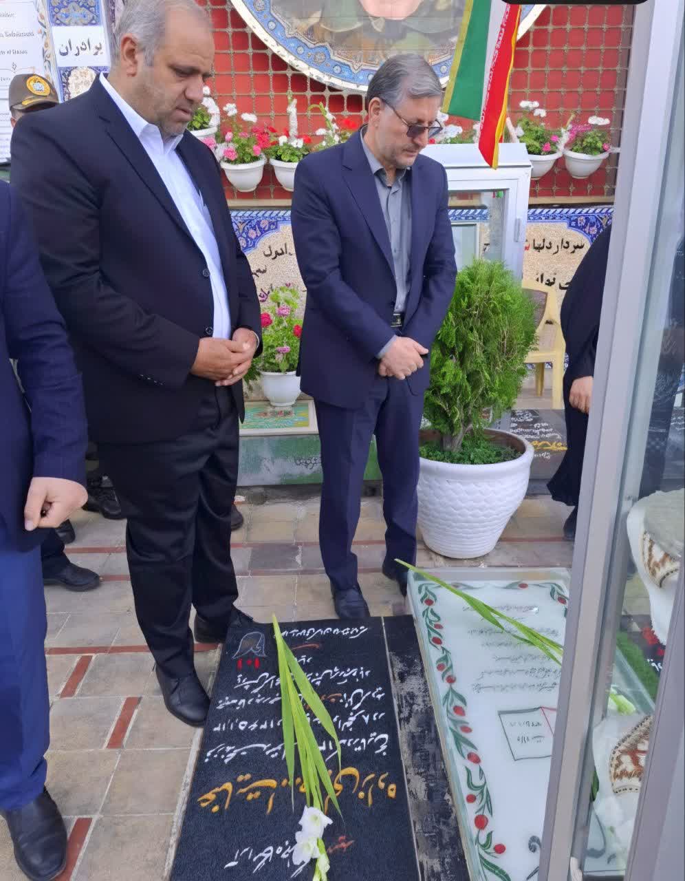ادای احترام و تجدید میثاق مدیرعامل و معاون فنی و مهندسی شرکت تولید نیروی برق کرمان به سید الشهدای محور مقاومت سپهبد شهید حاج قاسم سلیمانی و شهدای کرمان به مناسبت آغاز هفته پدافند غیرعامل